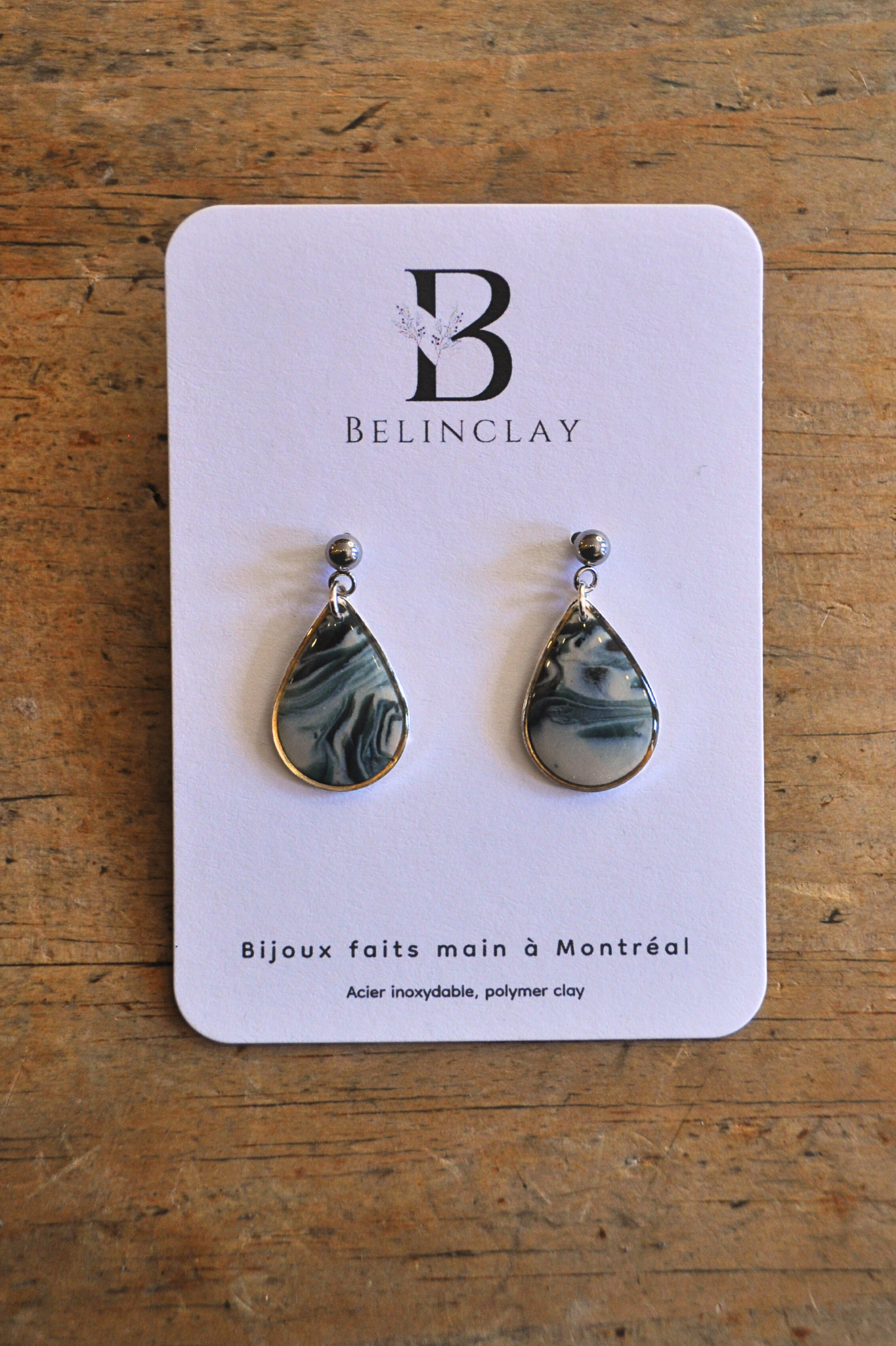Boucles d’oreilles en forme de goutte, aux nuances turquoise, bleue et blanche, pour un style audacieux et lumineux. Montées sur clous en acier inoxydable hypoallergénique, elles ajoutent une touche artistique et colorée à vos tenues.
