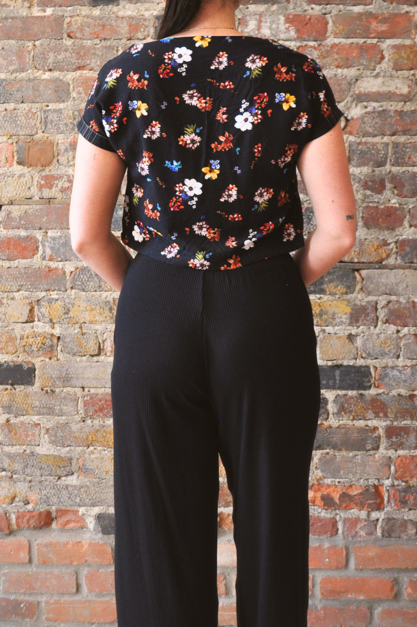 Haut ample court avec manches courtes repliées contrastantes