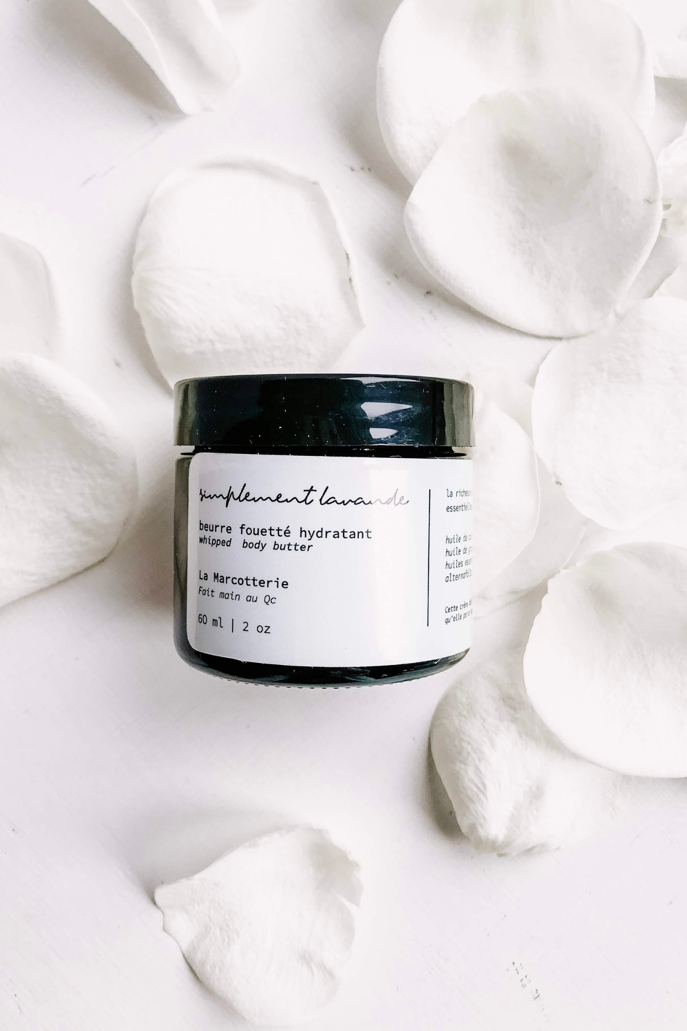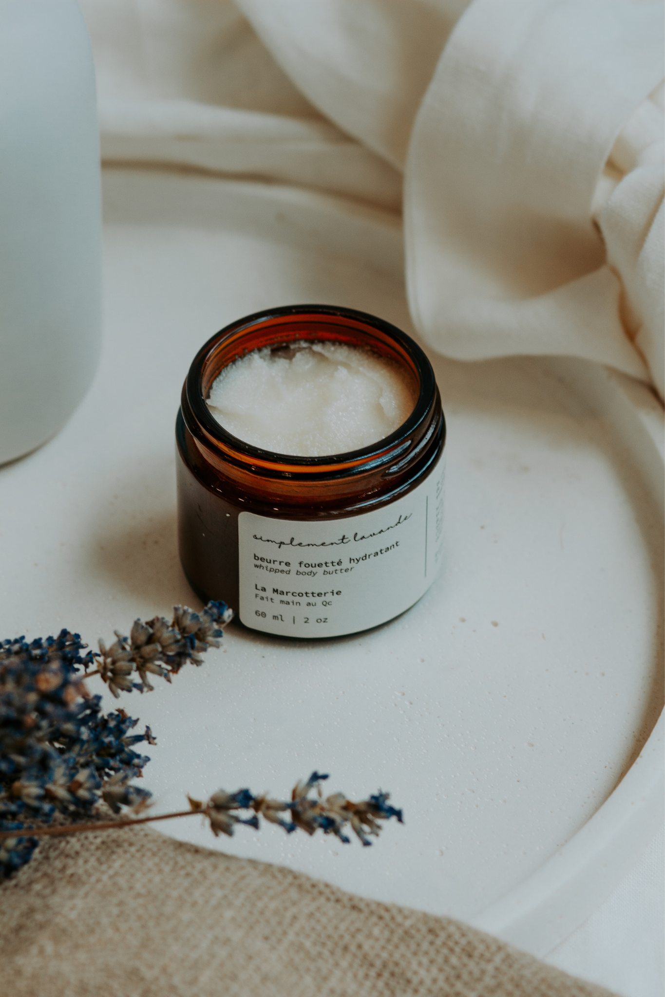 Découvrez le mélange apaisant de lavande, d'arbre à thé et de romarin dans le beurre corporel Simplement Lavande. Avec de l'huile de noix de coco, du beurre de karité et de la vitamine E, ce beurre entièrement naturelle convient à tous les types de peau, y compris les peaux sensibles. Améliorez votre routine de soins personnels avec une touche de luxe naturel dans chaque pot.