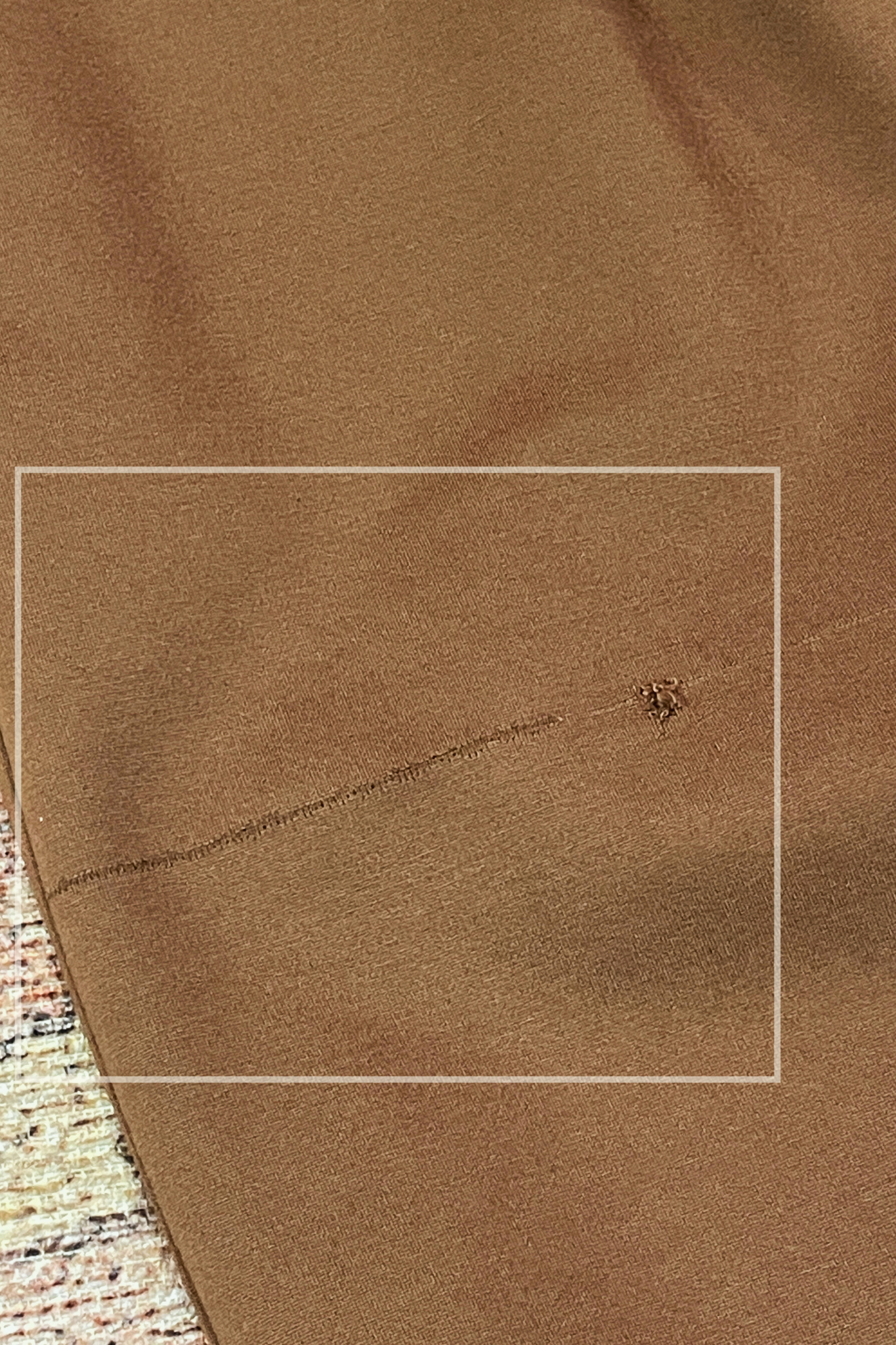 Défaut : Défaut du tissu à l'avant sur la jambe gauche.