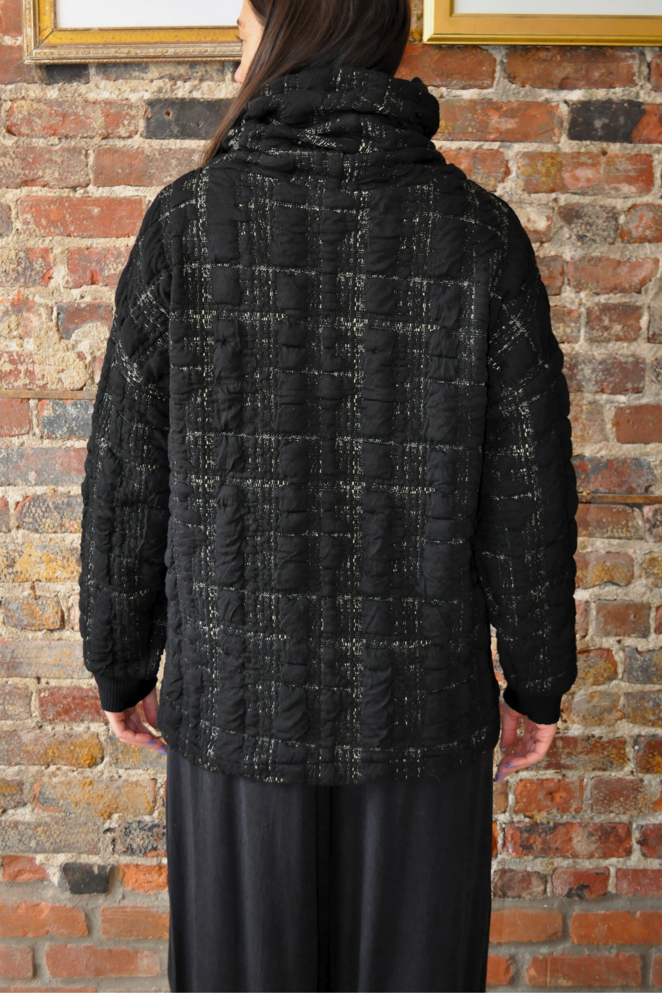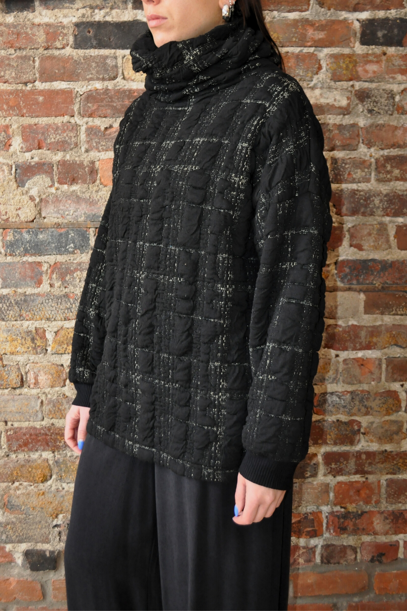 Long-sleeved top with a twisted turtleneck.