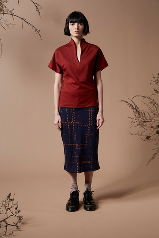 For this silhouette, we recommend emphasizing the neckline and hips in order to balance the volume of the upper body.