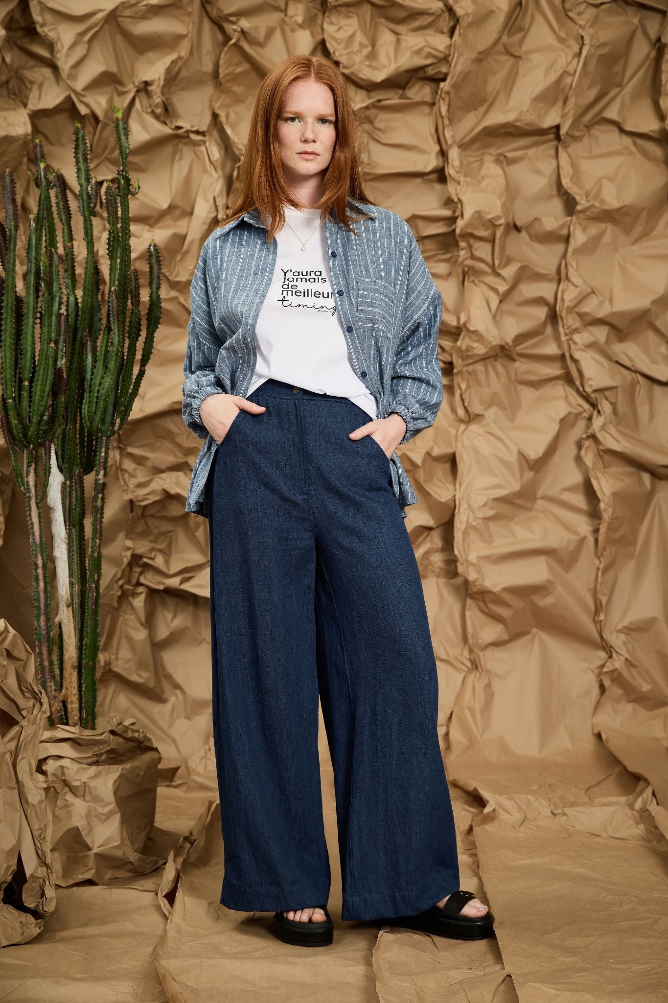 MATCH: La chemise MARILOU est portée avec le justaucorps MARINE, le pantalon MAURICE et le pantalon MATISSE.